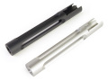 | コンマ何秒を競うシューティングマッチの世界では、シューター達が個々の独自のノウハウを集約して無駄な機能を排除し、必要な機能を更に特化させたレースカスタムガンで競技に挑んでいます。このアウターバレルは、そんなシューター達の要望に応える為に生み出されたアイテムです。レースガンにとっては不要な動作であるリコイル機能をなくし、バレルのブレから生じる集弾性の低下をノンリコイル仕様のこのアウターバレルはクリアしています。また、アウターバレルの内径をタイトに仕上げているので、命中精度の飛躍的な向上が期待できます。更にマシンカットによる徹底的な軽量化が施されたフロント部が、カスタマイズ的な要素も強く主張したデザインに仕上げています。 |