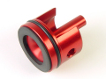 ピストンの衝撃を受け止め、確実にノズルにエアーを送り込む為に、ジュラルミン削り出しにて製作しアルマイト処理にて表面硬度を2倍以上にアップさせています。抜群の強度と耐久性を誇り、同時にノズルのセンター位置の精度が向上しています。さらにエアー流入側にテーパー加工を施しエアーの流入抵抗を減らし、高い整流効果と流速を実現します。