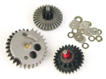 実銃の様に、リアルなリコイルショックを生み出す次世代電動ガン・シリーズ。そのギミックは、リアルで強烈な反動を生み出す反面、今までの電動ガンとは比べ物にならない程、様々な部分に負担が蓄積され易くなっています。各部のゆるみや内部の摩耗・損傷部品の交換といった、実銃同様の定期メンテナンスが必須条件になりつつあります。なかでもパワーソースとリコイルエンジンを同時に作動させるギアやピストン部に至っては、最も高負担を強いられており、通常電動ガンに比べ1/2-1/4まで耐久寿命が低下(ライラクス社テスト比)しています。ライラクス社ではノーマルの耐久テスト結果を元に、様々なパターンのテストを繰り返し行い、各ギア部の素材の組合せ、加工方法、浸炭・高周波焼き入れ、ショットピーニング等の耐久性を高める様々な工程や処理を施し、リコイルエンジンを搭載した次世代型に適したギアを完成しました。 推奨スプリング 「強化純正トルクタイプ」「強化ダブルトルクタイプ」共に、ライラクス社「ノンライナースプリング 次世代用 MS80SP/MS90SP」 |