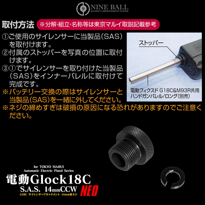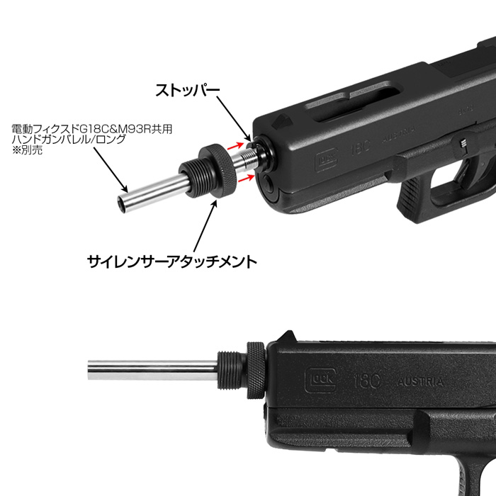東京マルイ製電動ハンドガン、G18Cに使用可能なサイレンサーアタッチメントです。