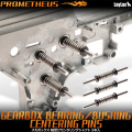 高精度に加工されたセンターシャフトによって軸受け同士の軸線を正確に補正し、スプリングスペーサーによって軸受けをメカボックスに密着させることで嫌気性接着剤の硬化を補助します。