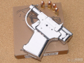 「リバレーター」オール・クローム・シルバーです。フレームなどのプラスチック部品はもちろん、トリガー、トリガーガード、コッキングノブなど、ダイキャスト部品に至るまでピカピカのクロームメッキ仕様です。 【仕様】 フレーム、バレル:HW樹脂にアイアン・フィニッシュ塗装。コッキング・ノブ、トリガー、トリガーガード、カートキャッチャー:亜鉛ダイキャスト。 コッキングノブとトリガーはサンド・ブラスト処理。 全長:約141mm、銃身長:4インチ、重量:約500g、装弾数:1発(7mmキャップ火薬使用)。 復刻版操作手順書、発火45ACPダミーカートリッジ1発、排莢用木製棒(太、細各1)、分解用六角レンチ付属。 |