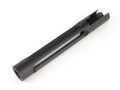| コンマ何秒を競うシューティングマッチの世界では、シューター達が個々の独自のノウハウを集約して無駄な機能を排除し、必要な機能を更に特化させたレースカスタムガンで競技に挑んでいます。このアウターバレルは、そんなシューター達の要望に応える為に生み出されたアイテムです。レースガンにとっては不要な動作であるリコイル機能をなくし、バレルのブレから生じる集弾性の低下をノンリコイル仕様のこのアウターバレルはクリアしています。また、アウターバレルの内径をタイトに仕上げているので、命中精度の飛躍的な向上が期待できます。更にマシンカットによる徹底的な軽量化が施されたフロント部が、カスタマイズ的な要素も強く主張したデザインに仕上げています。 |