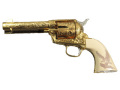 | ●表面メッキ仕上げを真鍮メッキとし、コストダウンを実現した「ディフュージョン(普及 型)」バージョン。 ●構造等は従来型と全く同じ。完成品でこの価格は、超お得なモデルです。お見逃しなく! ●不朽の名作とヒーローをモチーフにした、金属製モデルガン。 ●カートリッジ等、シリンダーに装填できる物の設定はございません。 ●COLT社公認モデル |