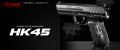 - HK45本体、マガジン(装弾数30発)、保護キャップ、取扱い注意・説明書、クリーニングロッド、他