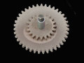 電動ガンを構成する3種類のギアのうちの一つ『ベベルギア』は、モーター(ピニオンギア)から送られてきた動力をスパーギアに伝達する役割をしているギアです。また、ベベルギアは通常のギアとは違い、モーターの動力を送るだけでなく、その動力が逆回転しないように『逆転防止ラッチ』で防ぐ役割も担っております。