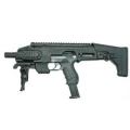 | 最新のタクティカル・ウェポンとして注目されている、オートマチック・ピストルにコンバージョンキットを装着し、メインアームズとして運用する「ピストル・カービン・コンバージョン」モデル。この全く新しいスタイルを、マルゼンのガスブローバックハンドガン「ワルサーP99」に導入!迫力のポリマーボディに覆われイメージ一新!!伸縮ストックとフォールディングフォアグリップにより、安定したショットが可能。各部に配置されたピカティニーレールにより、汎用性が広がります。大容量の40連ロングマガジンを標準装備した、お買い得なセットです。 |